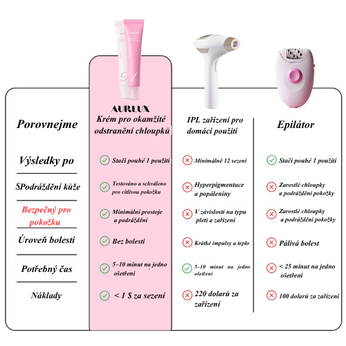 Ne, krém na odstranění ochlupení Aurlux neodstraňuje chloupky i s kořínky. Jemně rozpouští chloupky těsně pod povrchem kůže, což z něj činí bezbolestnou a účinnou alternativu k voskování nebo pinzetě.