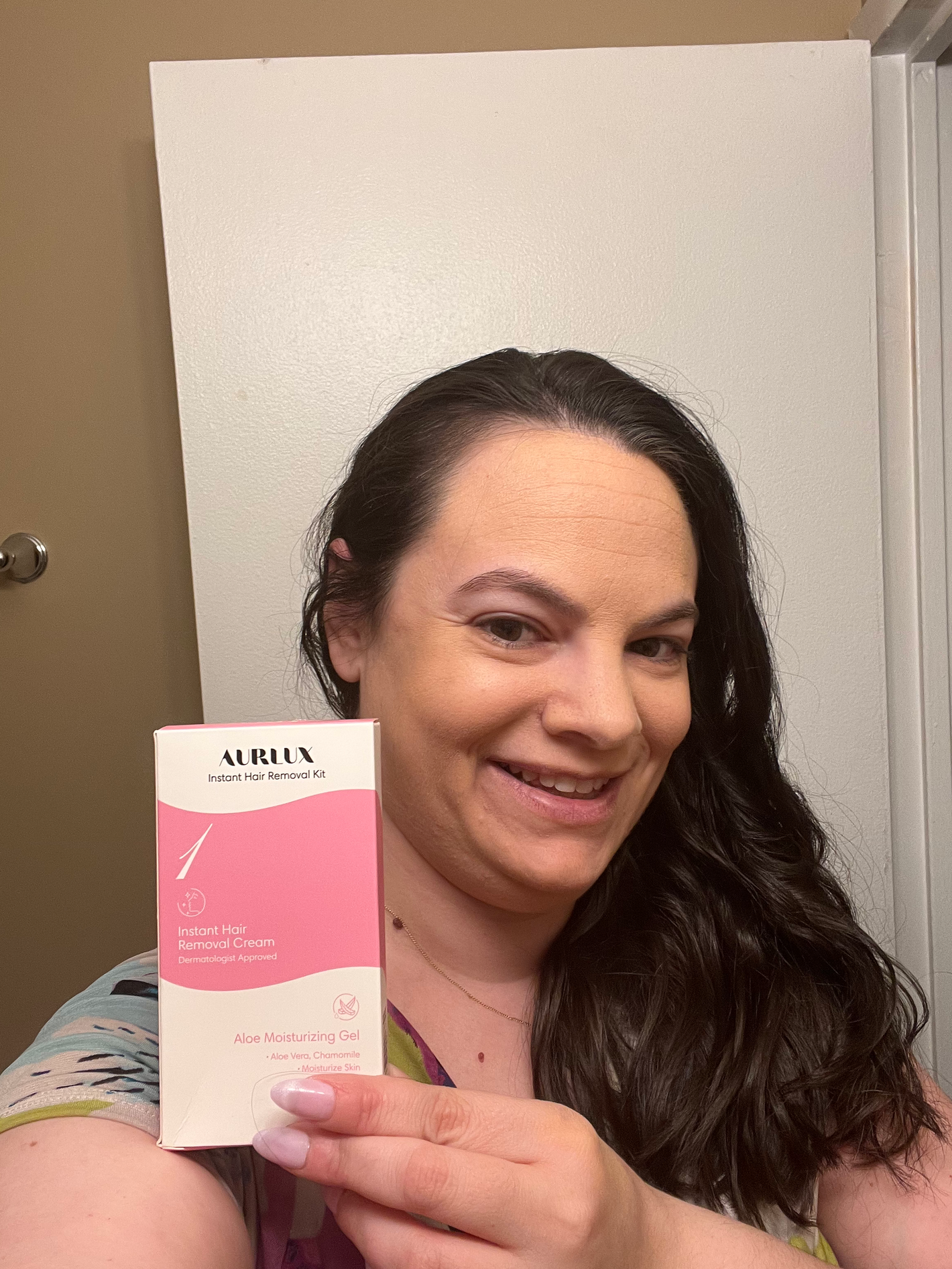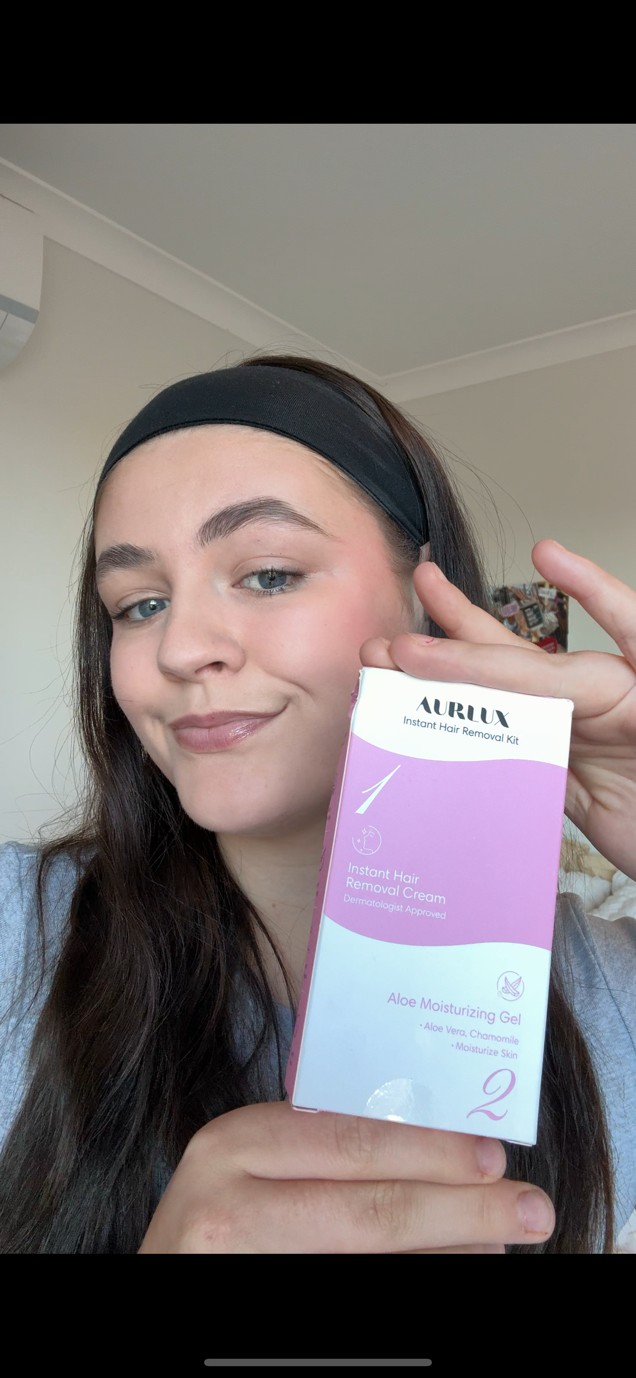 Krém na odstranění ochlupení od Aurlux je jemně vyroben z uklidňujících ingrediencí, jako je aloe vera a bambucké máslo. Může být použit na mírné, nezánětlivé akné, pokud předem provedete test na malém kousku kůže.
